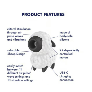 ¿Es hora de contar ovejas? ¡No con este! La adorable Satisfyer Dreamy Sheep seguramente te mantendrá al día: combina pulsos de aire sensuales con poderosas vibraciones para una estimulación del clítoris profundamente satisfactoria que no es inducir el sueño.