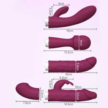 Descubre nuevas sensaciones con nuestro Set de Vibrador Intercambiable 4 en 1, diseñado para brindarte máxima versatilidad y exploración.
